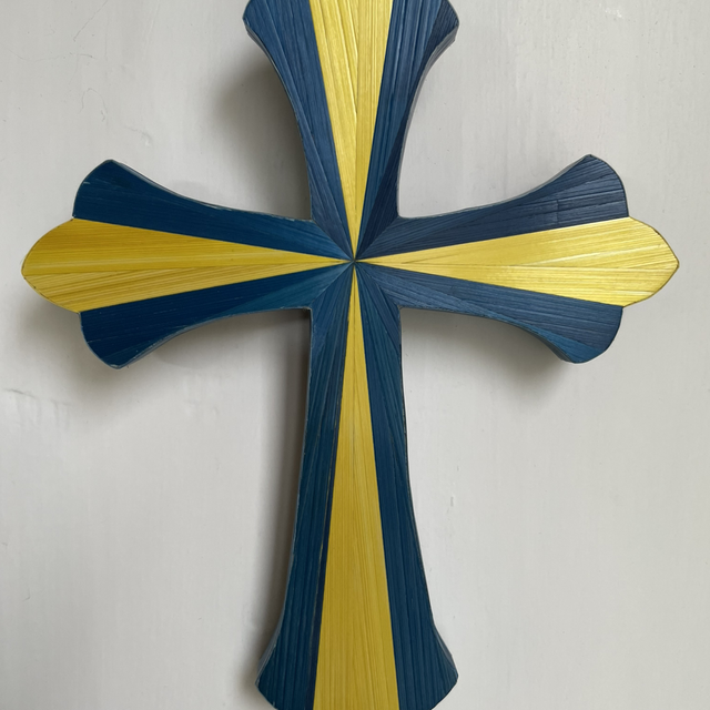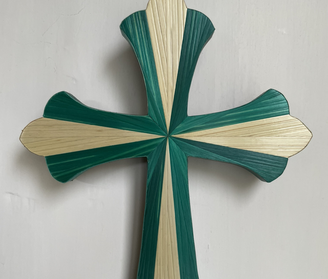 Croix en marqueterie de paille - Taille 14/18,5cm -