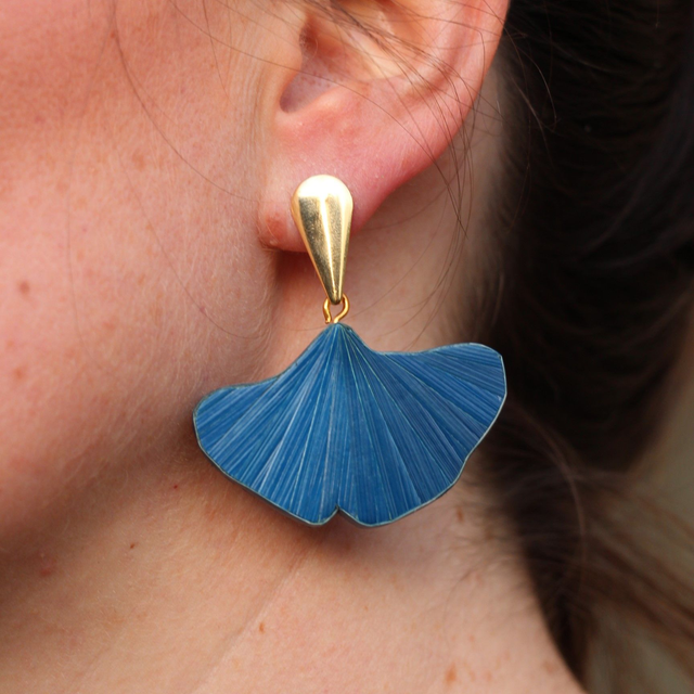 Feuille de Ginkgo en marqueterie de paille - différents coloris possibles - clip ou clou
