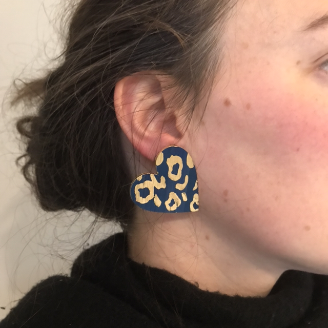 Cœurs en marqueterie de paille et taches léopard feuille d’or